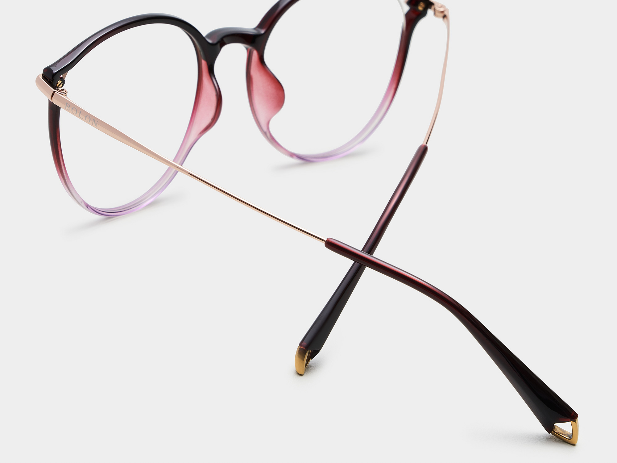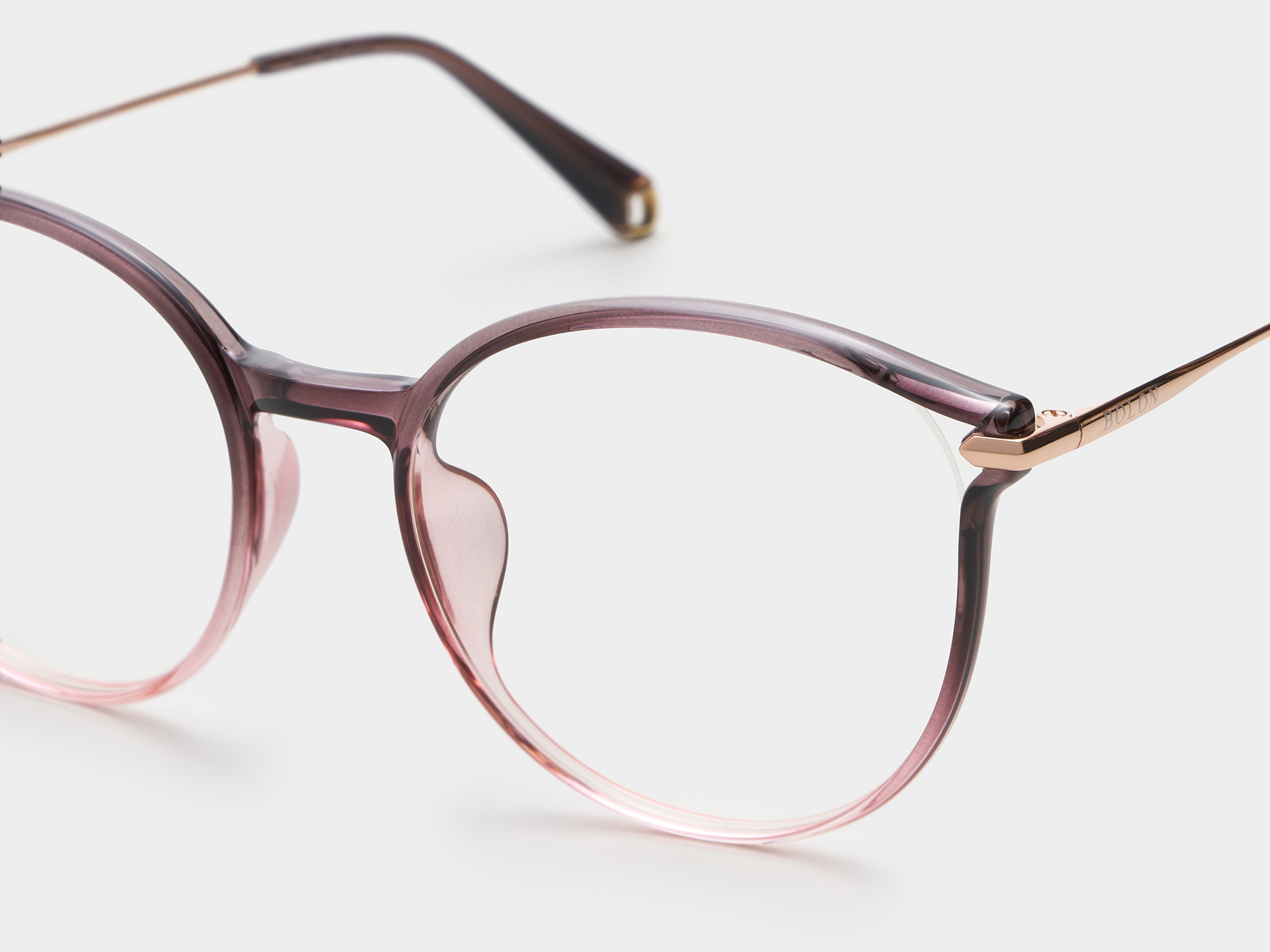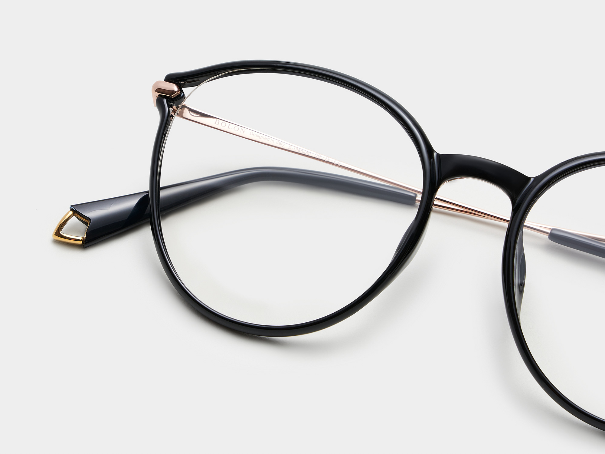 This cat-eye frame is a definite must-have. Its curvedesigned frame accompanied with titanium temples brings out femininity and chic.